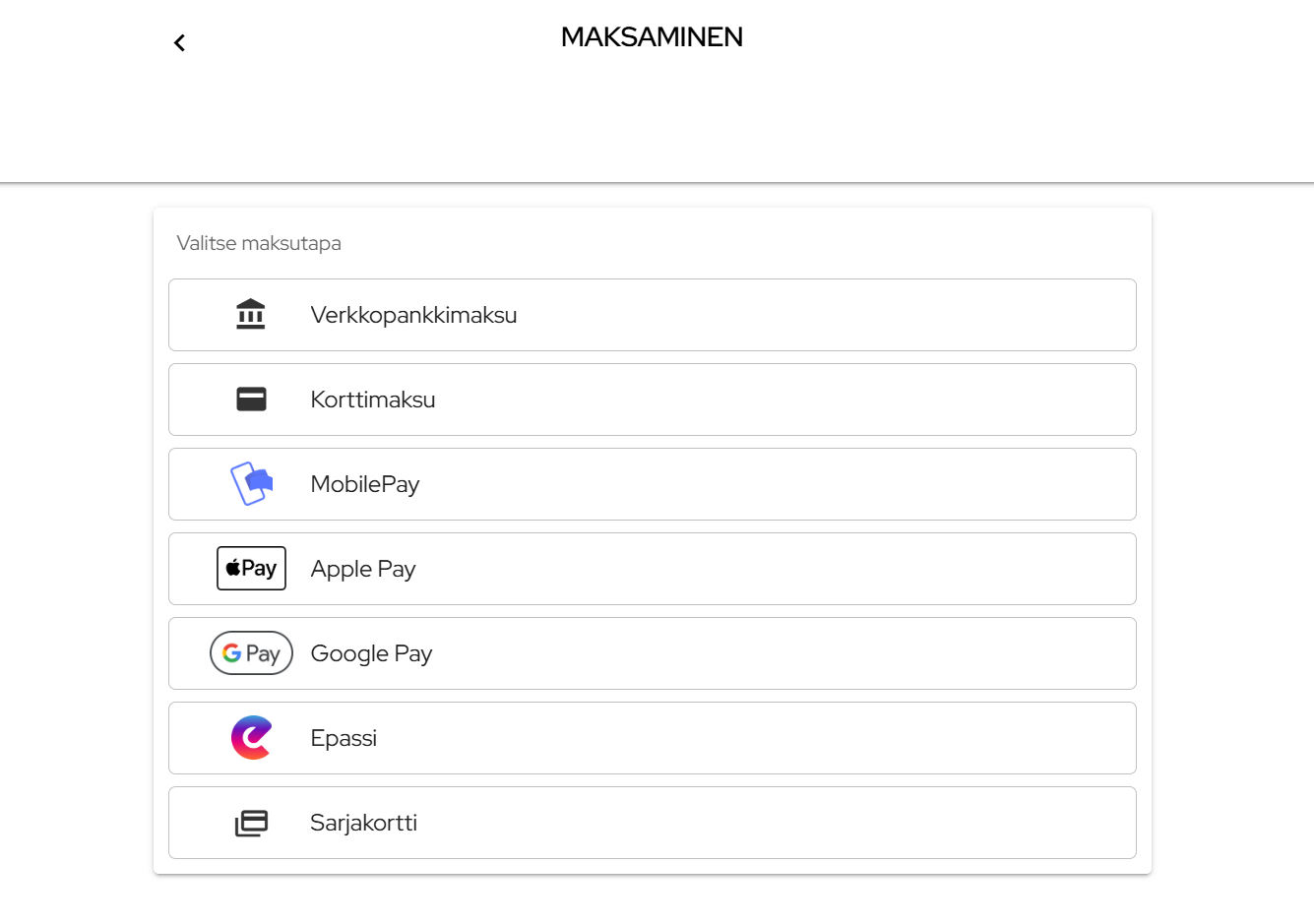 - Jos haluat, että Epassi on käytettävissä myös sarjakorttien maksutapana, se tulee ottaa käyttöön sarjakorttipohjakohtaisesti kohdasta Asetukset → Sarjakortit.