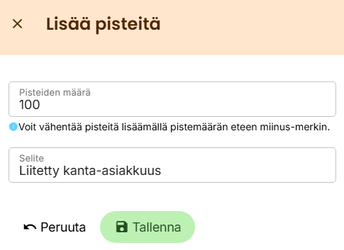 - Klikkaa Lisää pisteitä ja lisää liitetyn asiakkaan pistemäärä käsin uuteen yhdistettyyn tiliin