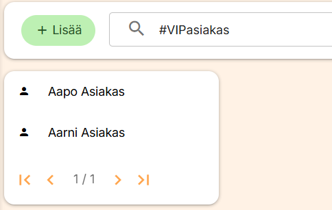 Varauksen ja asiakkaan haku onnistuu nyt myös tagien avulla. Voit tehdä haun tagilla ja hakusanalla sekä yhdellä tai useammalla tagilla samaan aikaan.