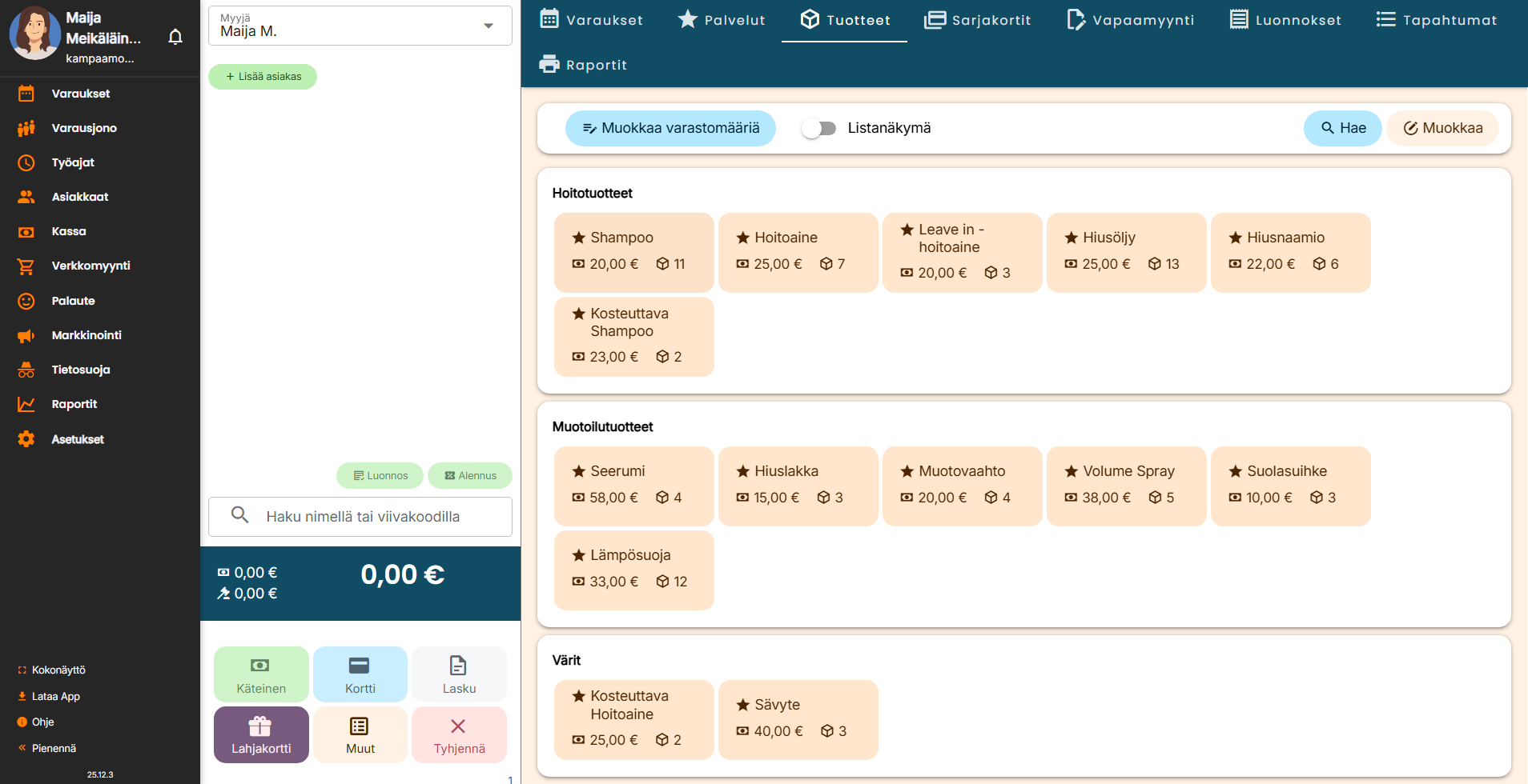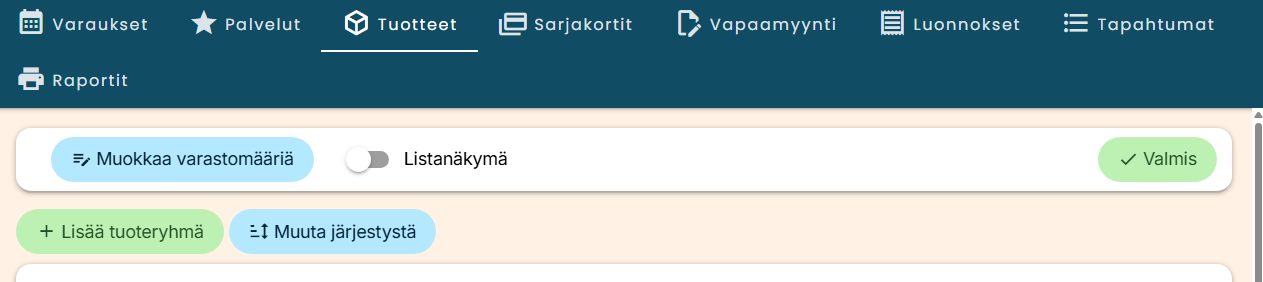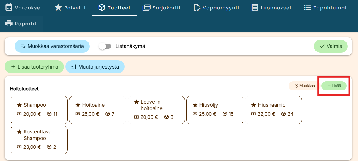 - Painamalla MUOKKAA, pääset muokkaamaan jo olemassaolevia tuotteita tai lisäämään uusia.