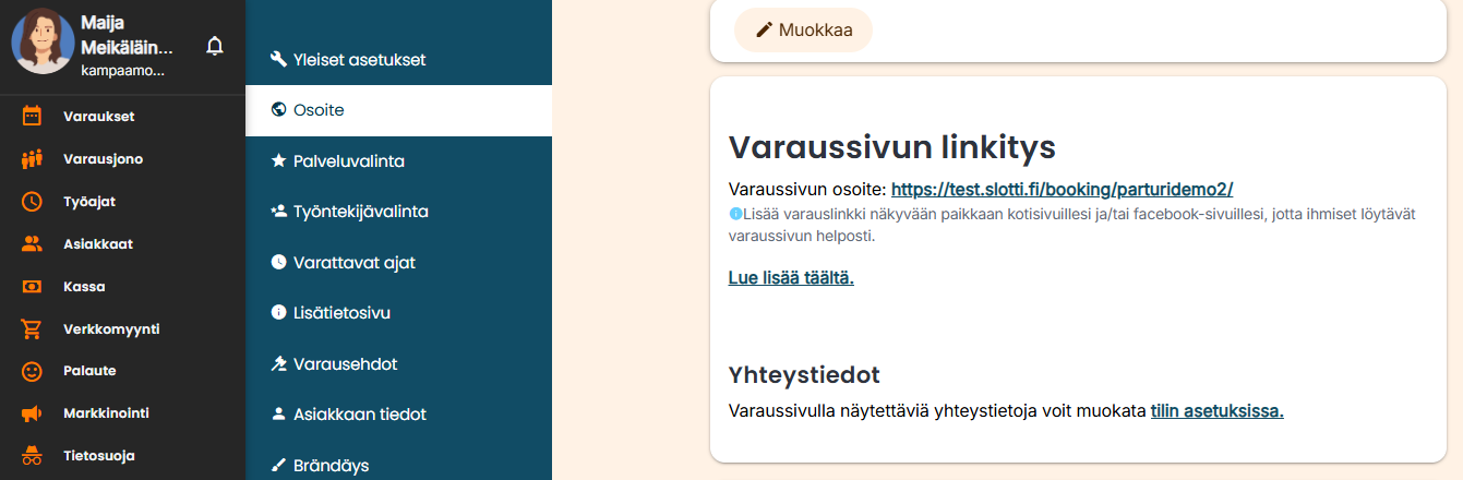 Voit lisätä varaussivun osoitteen Facebook-sivullesi. Lue tarkemmat ohjeet täältä.