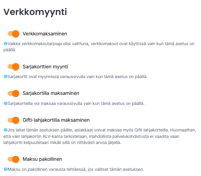 - Ota verkkomaksut käyttöön aktivoimalla Verkkomaksaminen-laatikko.